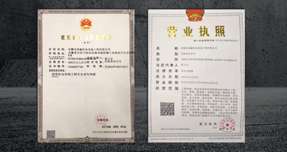 营业执照经营范围齐全,拥有机电安装三级专业承包资质,AAA信用证书! |